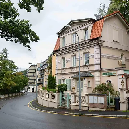 Cet établissement Domov Pro 8 Hostu Ve Meste Karlovy Vary est situé à environ 15 minutes en voiture de la Colonnade du Moulin et propose de la randonnée et du cyclisme aux clients actifs. Cette villa de Karlovy Vary comprend un stationnement privé d'une voiture et une terrasse avec des vues sur le jardin.